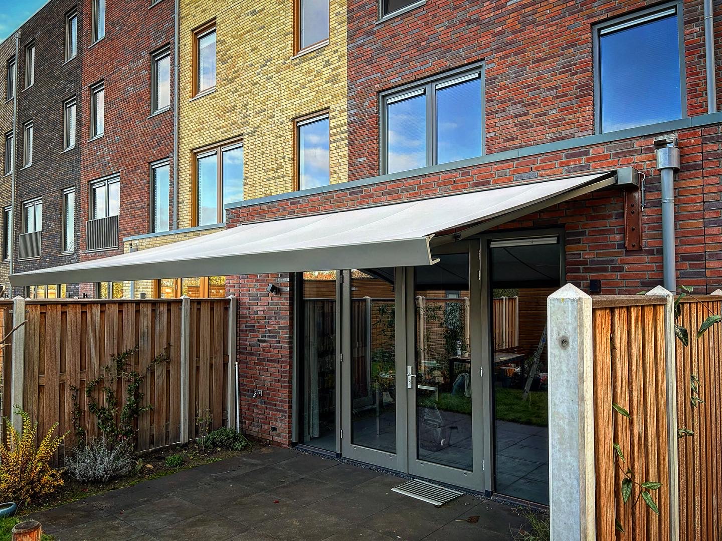 Zo wordt ook de laagstaande zon effectief geweerd – ideaal voor een terras op het westen met de ondergaande zon.